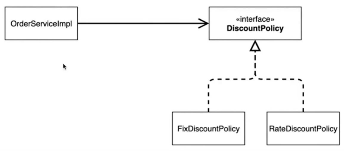 위처럼 우리가 FixDiscountPolicy(기존 정책 구현체)를 RateDiscountPolicy(변경된 정책 구현체)로 변경하는 순간!