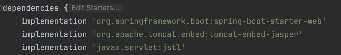implementation 'org.glassfish.web:jakarta.servlet.jsp.jstl' //스프링부트 3.0 이상