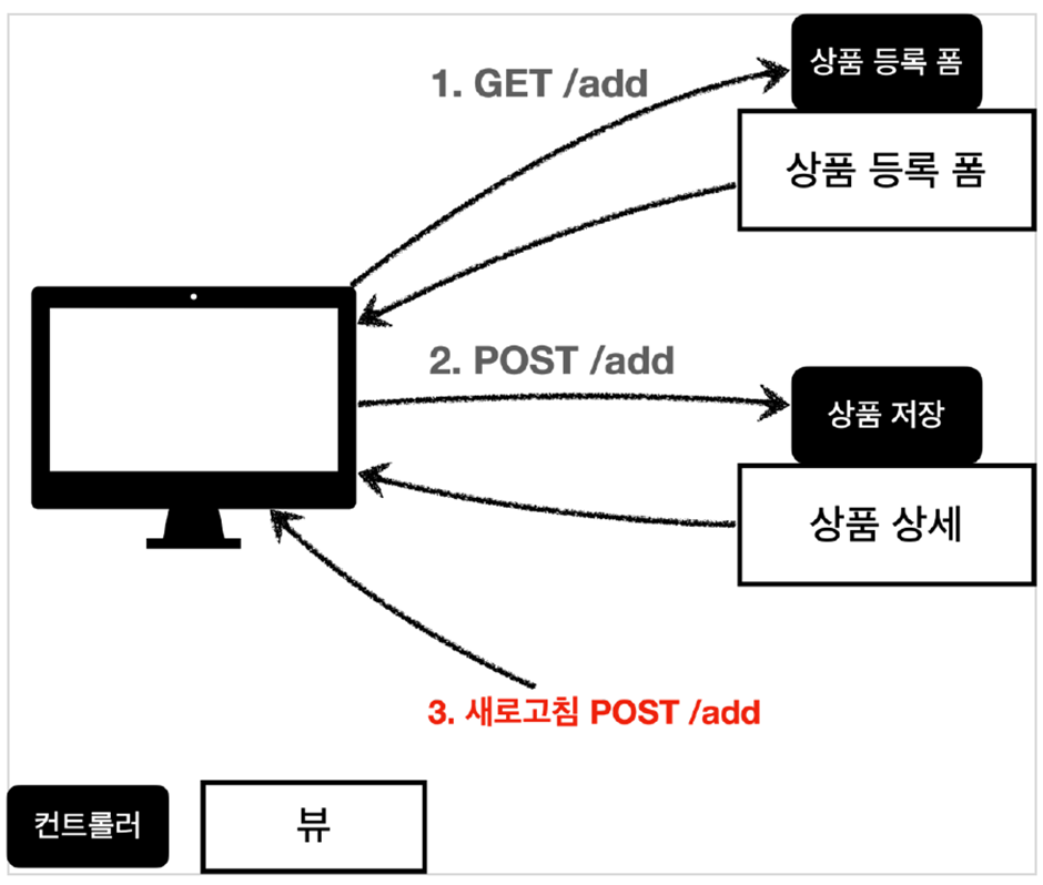 - 웹 브라우저의 새로고침은 마지막에 서버에 전송한 데이터를 다시 전송하기 때문이다.