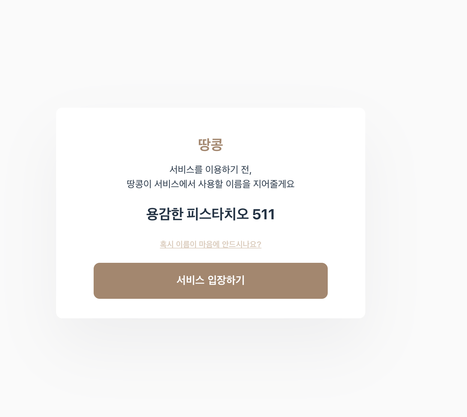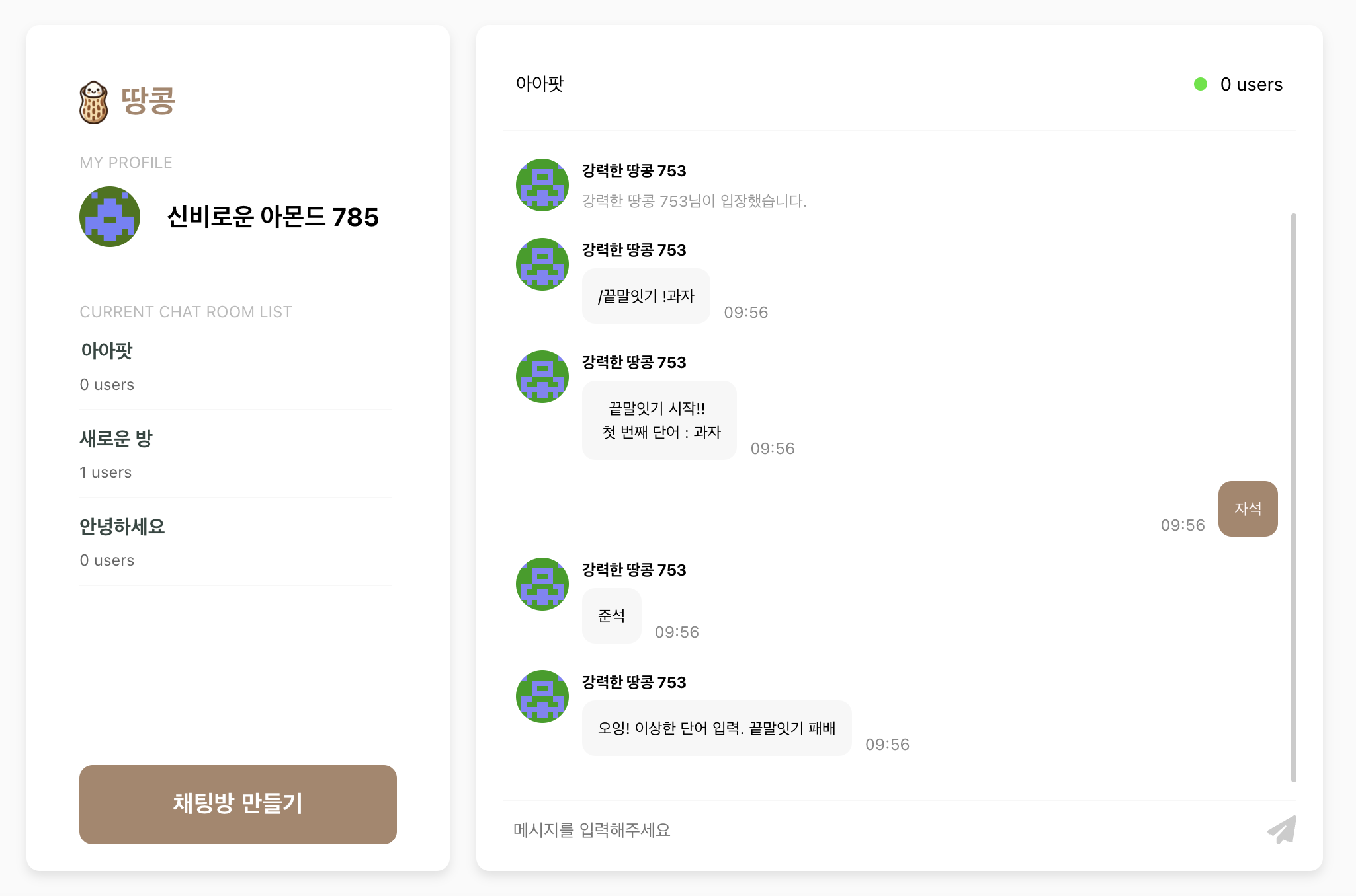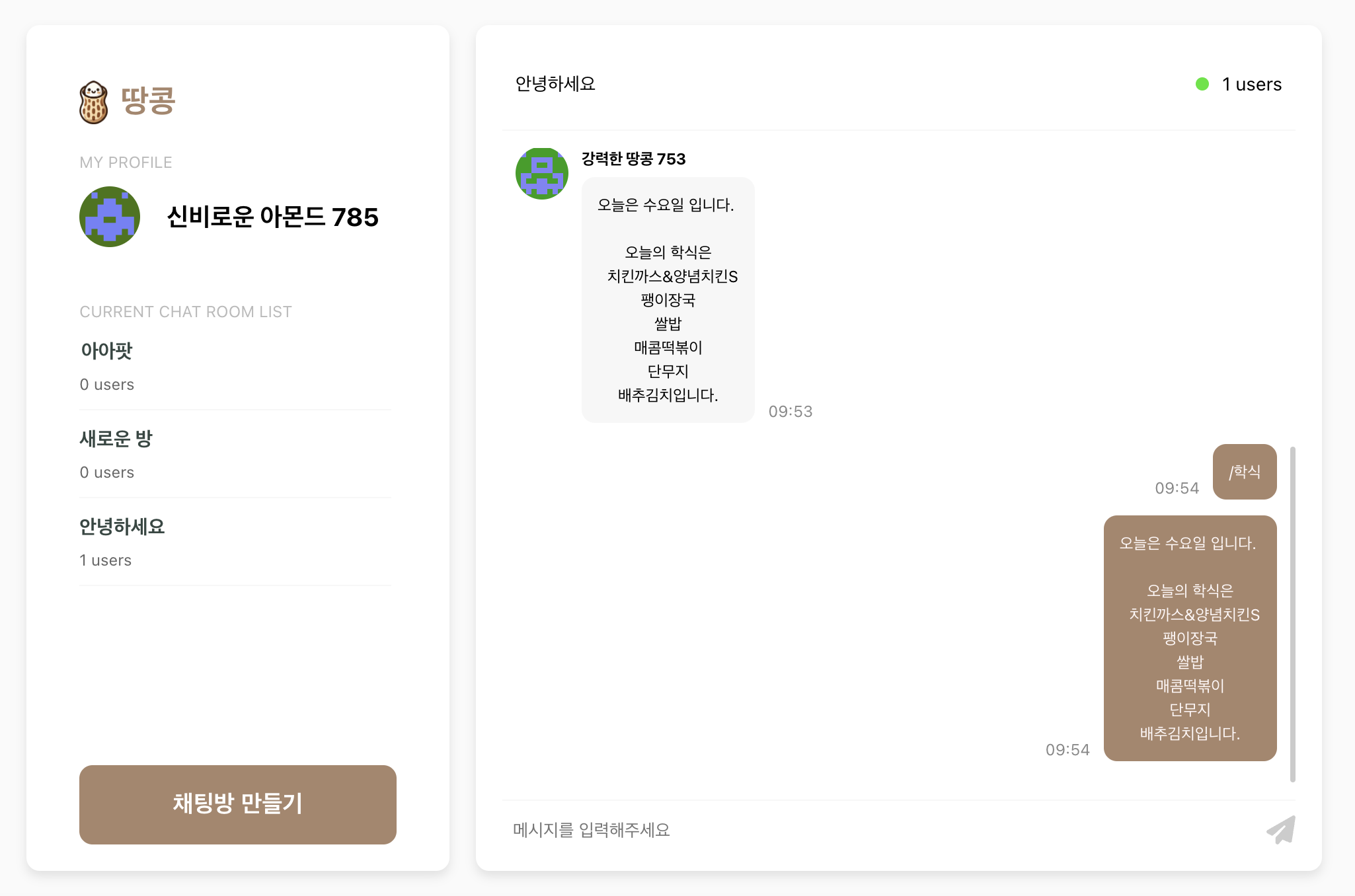 추가로 이름이 땅콩인 이유는 "심심풀이 땅콩" 이라는 말처럼 학교에서 심심할 때 꺼내먹는 느낌의 서비스로 느끼게끔 땅콩으로 했는데 끝나고 교수님이 이름이 너무 올드하다고.. 심심풀이 땅콩이라는 말을 요즘 누가 쓰냐고 MZ픽이 아니라고 하셨다