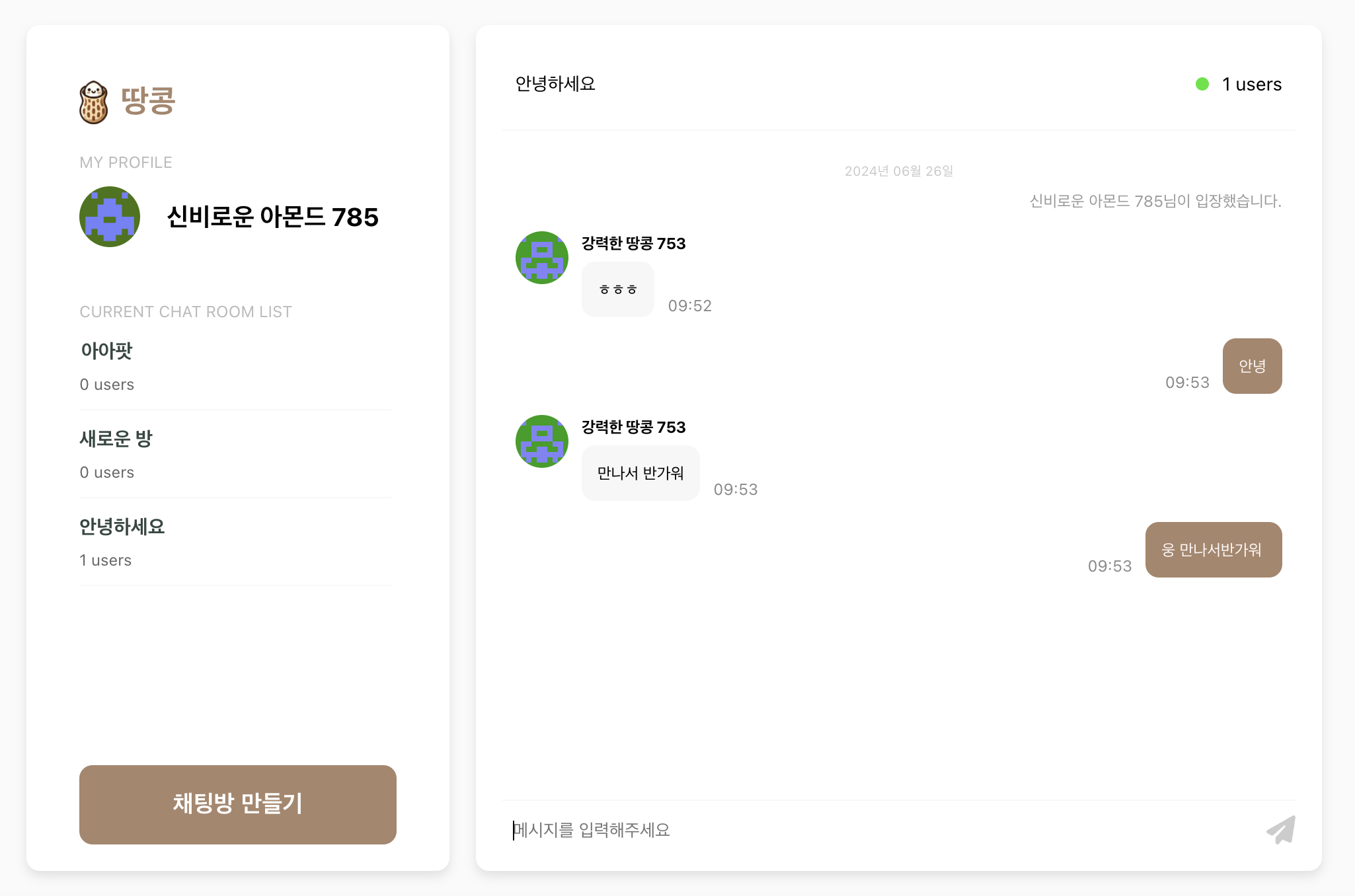 마지막으로 완성된 우리 "땅콩" 서비스 페이지를 보여주고 회고록을 마치겠다.