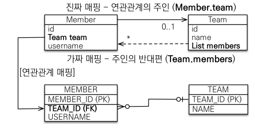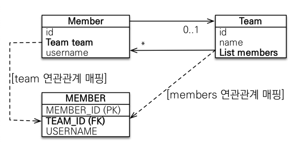 하지만 객체는 다르다. 멤버에서는 팀을 갈 수 있지만, 팀에서는 멤버를 갈 수 없다. 그래서 팀 엔티티에서도 지정을 해줘야한다.