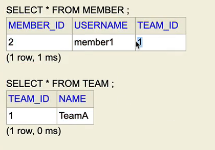 이럴 경우 RDB에서는 연관관계가 지정이 되겠지만, ORM 입장에서 생각해보면 teamId 라는 필드는 아무런 연관관계가 지정 되어있지 않은 이름 모를 필드가 되어버린다.