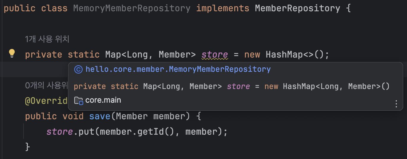 이렇듯 Map<Long,Member> store = new HashMap<>(); 선언부가 있었다